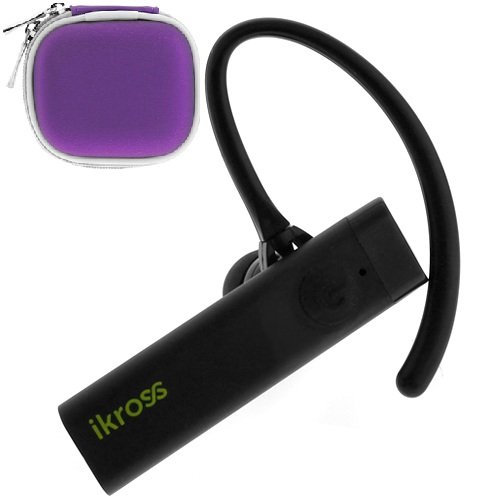 iKross Slim Noise-Cancelling Wireless Bluetooth Handsfree Headset with USB Docking Charger and Purple Bluetooth Carrying Pouch Case