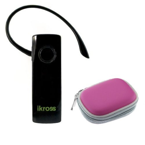 iKross Wireless Bluetooth Handsfree Headset + Hot Pink Premium Unviersal Bluetooth Headset Pouch Carrying Case